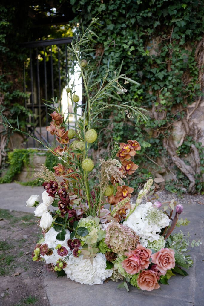 October showed up beautifully. The entire day felt like golden hour – soft light refracting through changing leaves, a gentle fall chill that arrived just as the dance floor really heated up. Neutral browns, creams, and greens were chosen intentionally, allowing the natural beauty of the Goodstone Inn to shine.